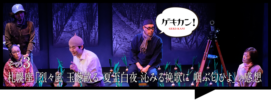 不揃いな人々の会話から、「札幌黄」の歴史、そして烈々布の歴史が見えてきて、そして、あれ?玉葱の匂いが劇場に漂うではないか。